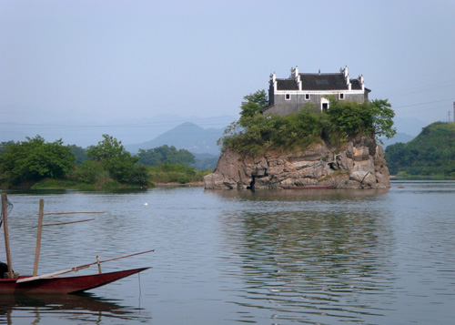 香零山為天然石磯結(jié)構(gòu),地處中流,隨瀟水水勢而展現(xiàn)不同的風光,勢浩蕩則如汪洋中之一小舟,水勢弱小則島亭昭然挺立。若雨后日出,煙鎖山腳,霧雨朦朧,往來舟楫,若隱若現(xiàn),給人一種煙波浩渺的意境,因而有“香零煙雨”之稱,為永州八景之一。