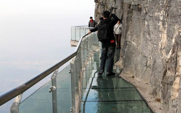 玻璃棧道是張家界天門(mén)山景區(qū)繼懸于峭壁之上的鬼谷棧道、憑空伸出的玻璃眺望臺(tái)、橫跨峽谷的木質(zhì)吊橋后打造的又一試膽新景點(diǎn)。這條看著就讓人腿軟的玻璃橋給人帶來(lái)的刺激震撼感可與舉世聞名的美國(guó)大峽谷玻璃走廊“天空之路”媲美。