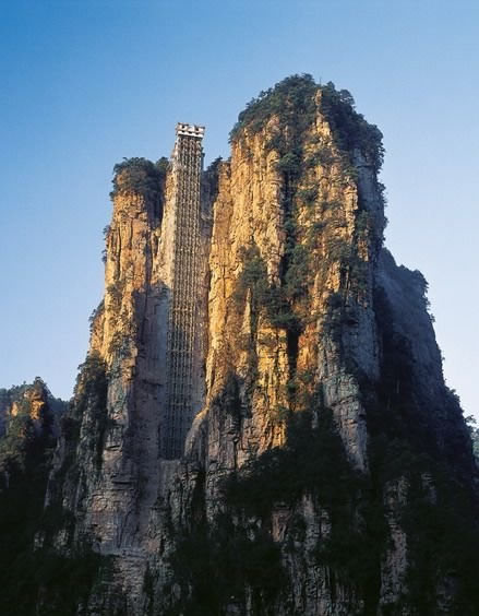 百龍?zhí)焯輬D片 2005年4月8日,張家界百龍?zhí)焯萑?hào)電梯通過(guò)驗(yàn)收正式投入運(yùn)營(yíng),這標(biāo)志著張家界核心景區(qū)旅游黃金周首條游客無(wú)須排隊(duì)通道誕生.。隨著張家界對(duì)景區(qū)核心袁家界的深度開發(fā)和金鞭溪與賀龍公園兩條紅色旅游線路的確立,選擇從金鞭溪乘百龍?zhí)焯萸巴医缂疤熳由劫R龍公園觀景的游客將越來(lái)越多,百龍?zhí)焯萑?hào)電梯開通后,它可為游客提供更可靠的交通保障,它將天子山、金鞭溪等精品游覽線連為一體,解決了多年困擾景區(qū)的交通瓶頸問(wèn)題。游客乘百龍?zhí)焯,只要?jīng)過(guò)1分58秒鐘,便仿佛進(jìn)入如詩(shī)如畫的天上人間,欣賞有張家界“后花園”之稱的袁家界大峰林神奇美景。