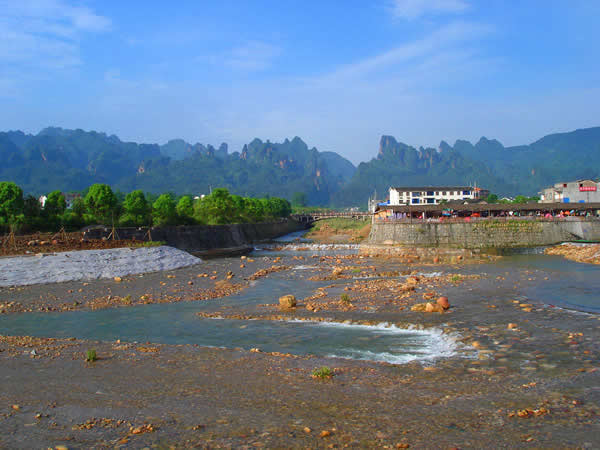 索溪峪的水 索溪峪的景觀,以山水為依托。不僅山奇、水秀,而且橋險(xiǎn)、洞幽。有十里畫廊、西海峰林、百丈峽、寶峰湖、黃龍洞、一線天等游覽點(diǎn)300多個。