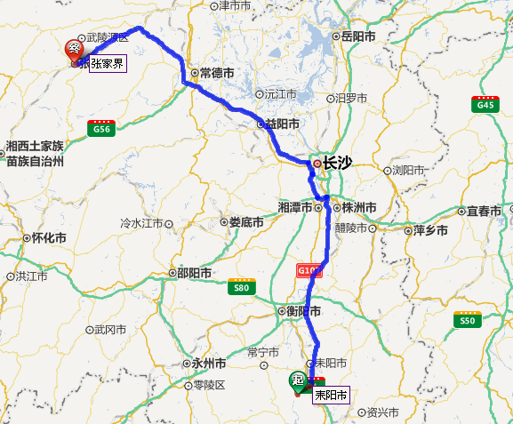 耒陽市到張家界自駕車路線圖