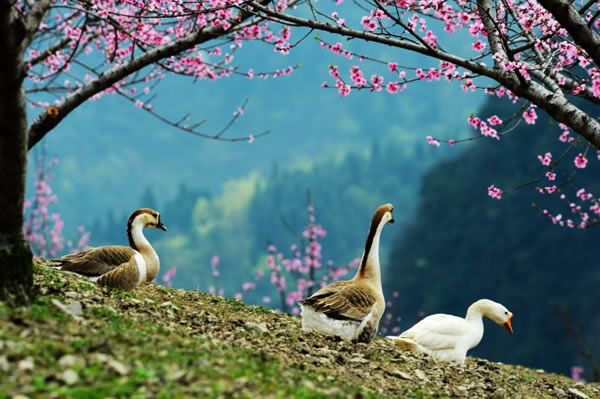 桃之夭夭,灼灼其華。據(jù)了解,天子山這處桃花仙境位于神堂灣至大觀臺之間的一農(nóng)場山丘內(nèi),面積足有一百畝以上。由于該地段剛好處于天子山至高點,因此極目遠(yuǎn)眺,峰林風(fēng)光、桃花美景盡收眼底。而盡管農(nóng)場,則是一派鄉(xiāng)村田園風(fēng)情,一群雞鴨鵝不時穿梭在桃樹林內(nèi),一邊尋覓食物,一邊享受春光;看家護(hù)院的小黃狗迎接游客的熱情叫聲,讓人頓生回歸鄉(xiāng)愁之感。