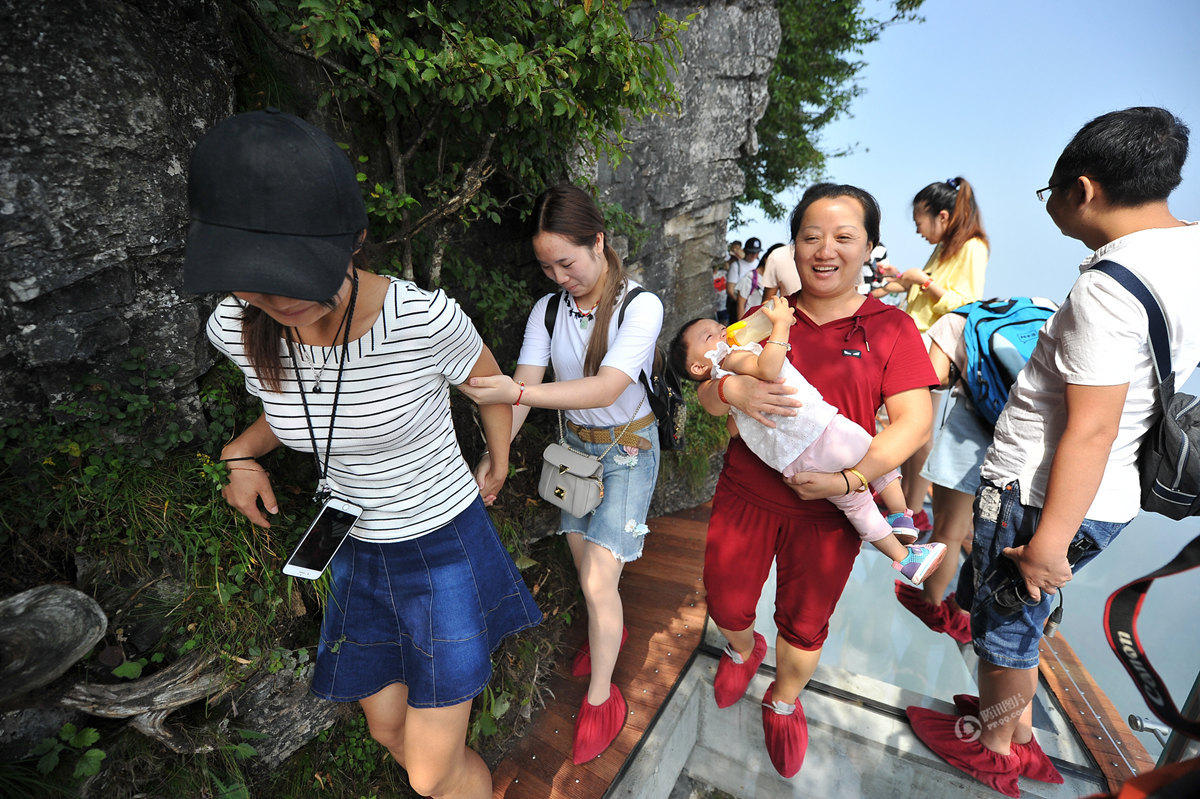景區(qū)第三條玻璃棧道——盤龍崖玻璃棧道開通迎客。玻璃棧道全長100米、寬1.6米,因站在玻璃棧道上能俯瞰