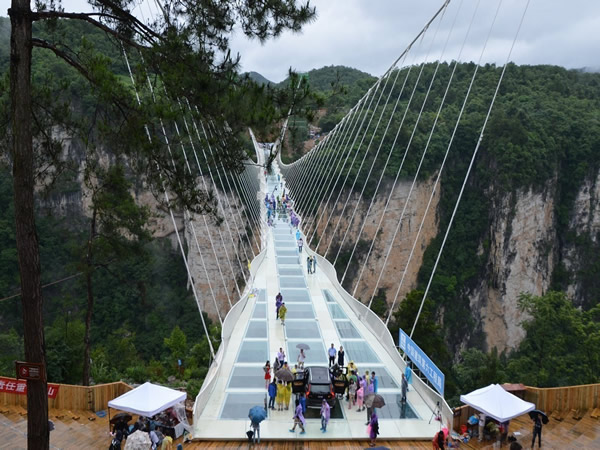 上 午:早餐后07:30至08:00 準(zhǔn)時統(tǒng)一集合乘車赴“小九寨溝”之美譽(yù)的張家界大峽谷景區(qū)。(車程約60分鐘)【張家界大峽谷+玻璃橋B線】(門票已含),(已含首道門票,含游船費(fèi),游覽時間約3個小時),零距離接觸張家界“奇峰三千,秀水八百”的神奇瑰麗。觀天仙水瀑布、蝴蝶泉瀑布、竹仙泉、翠潭攬瀑;行于一線天、天梯棧道、石壁裂縫、石上森林;探怪謎洞、佛手遮天、爛船巖千古流傳的未解之謎;谷中猴群歡躍,百鳥爭鳴,湖水清澈、群山倒蘸 ,鴛鴦戲水、空氣清新、絕無僅有。形態(tài)各異的瀑布群,把生命之源傾瀉得淋漓盡致;隨海拔變化的植物帶,將四季更替演繹得如詩如歌;數(shù)條彩虹,百米梭板,千年風(fēng)情,萬米長廊,把峽谷內(nèi)裝扮得如畫似錦。體驗(yàn)世界最高最長首座斜拉式高山峽谷玻璃橋【云天渡】,漫步天上人間、輕吻藍(lán)天白云、帶上你的心靈從這頭走到那頭、走過青絲到白發(fā)!挑戰(zhàn)極限,戰(zhàn)勝自我(上橋游覽時間為20-30分鐘);(玻璃橋游覽注意事項(xiàng):1、遇大風(fēng)、暴雨等極端惡劣天氣,玻璃橋有可能關(guān)閉,關(guān)閉不能通行時不退任何費(fèi)用;2、除錢包和帶有手機(jī)套的手機(jī)外,任何物品不得帶上橋;3、凡有心臟病、高血壓、恐高癥及醉酒和其他身體不適宜游覽的,請勿上橋;4、穿高跟鞋的游客不允許上橋;5、不得在橋上追逐、打鬧,拋物,不得倚靠橋上欄桿,以防身體傾斜,發(fā)生意外。6、游客在游覽過程中請聽從景區(qū)工作人員管理)!